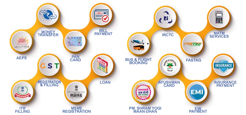 | AEPS | Mobile Recharge | Bus Booking | GST |